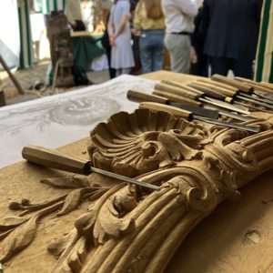 Les visiteurs ont ainsi eu l’opportunité unique de voir les sculpteurs à l’œuvre en train de sculpter une traverse de style Louis XV et ainsi de découvrir les outils spécifiques utilisés et d’observer les mouvements minutieux nécessaires pour donner vie à cette réalisation.