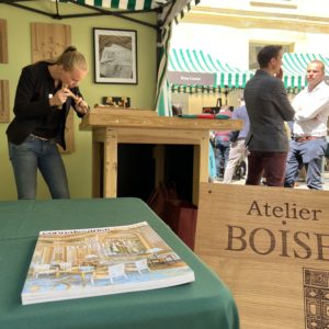 Par ailleurs, l’expérience sensorielle était enrichie de trois enregistrements sonores provenant de nos ateliers, recréant ainsi l’ambiance de travail, le rythme des outils et les sons caractéristiques qui ponctuent notre quotidien. Cette immersion sonore, olfactive, visuelle et tactile avec les différents échantillons de sculpture ainsi que le grand panneau de boiserie a permis aux visiteurs de se plonger dans les éléments fondamentaux de notre travail.